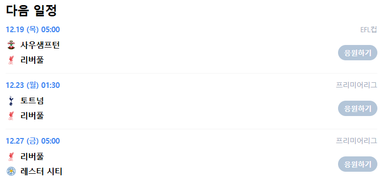 | <24/25> (경기 연기)EPL 15라운드 ▶ 리버풀 vs 에버튼 (4) | 2024.12.08 |
