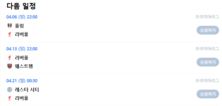 | <24/25> EPL 32라운드 ▶ 리버풀 vs 웨스트햄 ⚽ (1) | 2025.04.14 |