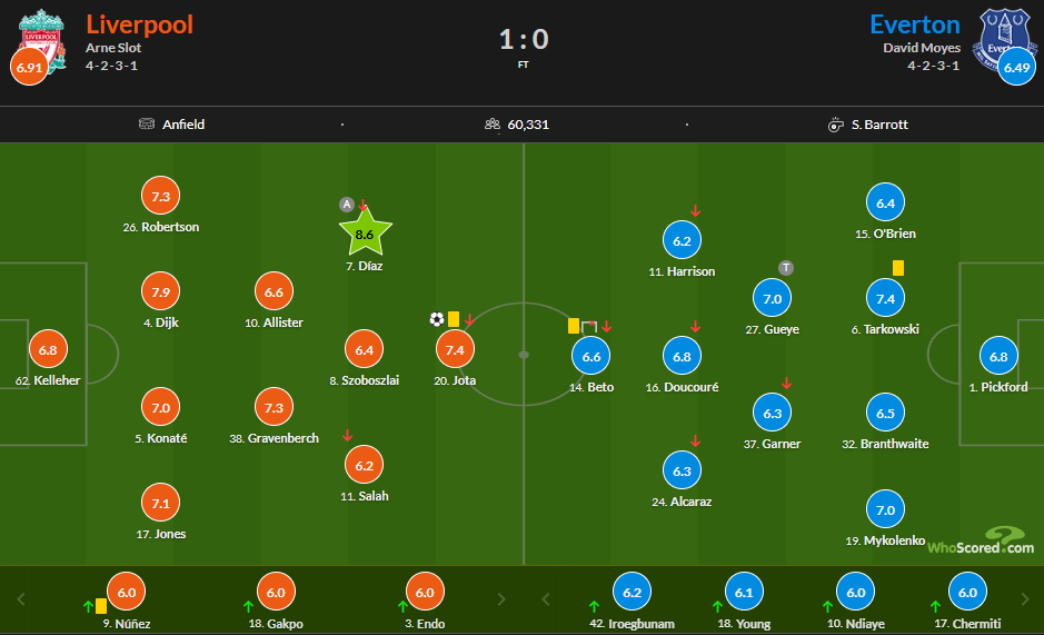 후스코어에서는 디아즈가 8.6점으로 MOM에 선정되었씁니다!!! 디아즈가 종횡무진 필드에서 드리블, 연계, 수비가담까지 많은 거리를 뛰었고 좋은 폼을 보여줬습니다@.@😍 다시 디아즈의 폼이 좀 올라와서 살라의 30-20이 완성되길 바랍니다 ㅎㅎ