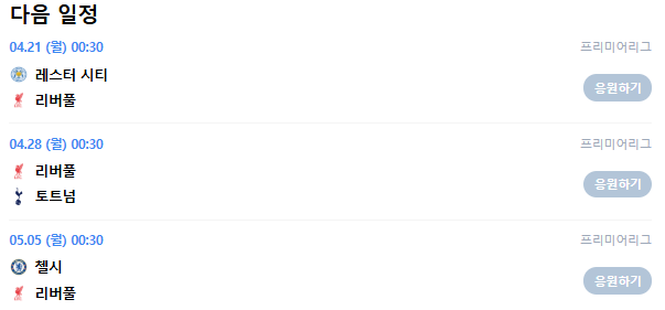 | <24/25> EPL 33라운드 ▶ 리버풀 vs 레스터시티 ⚽ (3) | 2025.04.24 |