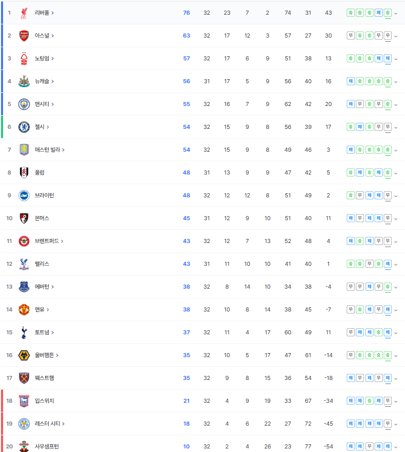 EPL 32라운드