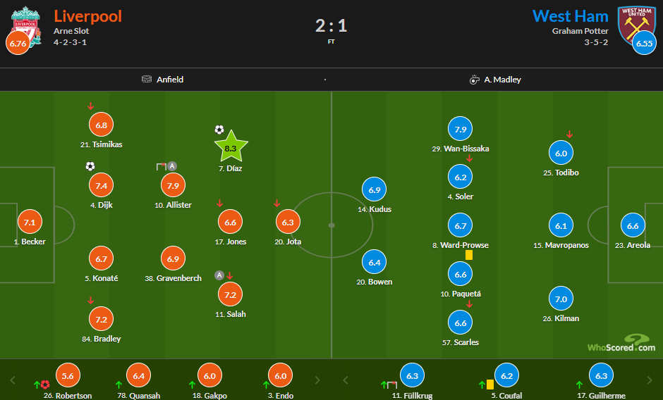 | 리버풀 2 | 1 웨스트햄 |